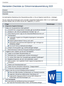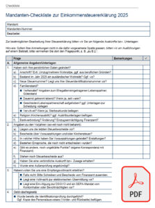PDF-Formular: Checkliste zur Einreichung von Angaben und Unterlagen zur Erarbeitung der Einkommensteuererklärung